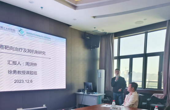 医院肝病临床科室负责人钟林主任、李志伟主任、蔡庆贤主任以及徐勇教授团队科研人员周洪钟博士、苟冬梅博士、华荣茂博士对肝病相关研究成果进行了汇报。参会人员积极交流、热烈讨论,会场气氛活跃融洽。