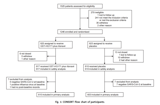 2024年4月10日,泰中定?的II/III期临床研究结果以“Efficacy and Safety of GST-HG171 in Adult Patients with Mild to Moderate COVID-19: a Randomised, Double-blind, Placebo-controlled Phase 2/3 Trial”为题发表在《柳叶刀》旗下子刊《eClinicalMedicine》。我院卢洪洲教授为本文的共同第一/通讯作者。与钟南山院士、王福生院士、陈晓春教授、杨子峰教授、毛伟忠博士(广生中霖首席科学家)等联合发表。泰中定?(阿泰特韦/利托那韦)的II/III期临床试验由钟南山院士、卢洪洲教授、杨子峰教授带领,与福建广生中霖生物科技有限公司等单位合作。研究在全国47个试验点展开,针对发病时间不超过72小时的轻至中度COVID-19成年患者,通过随机、双盲、安慰剂对照的科学方法,确保了研究的严谨性和结果的准确性。