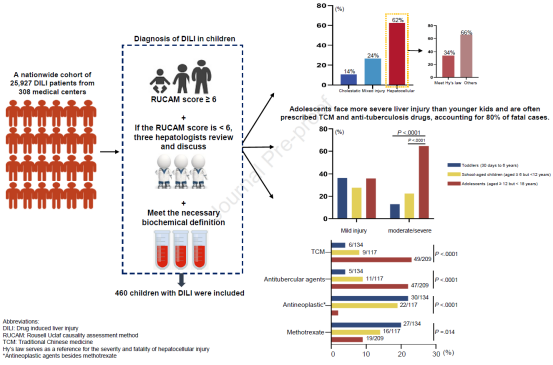 二十九、陈军教授团队利用全国流行病学数据分析了中国儿童药物性肝损伤(DILI)的临床特征、疑似药物和相关结局