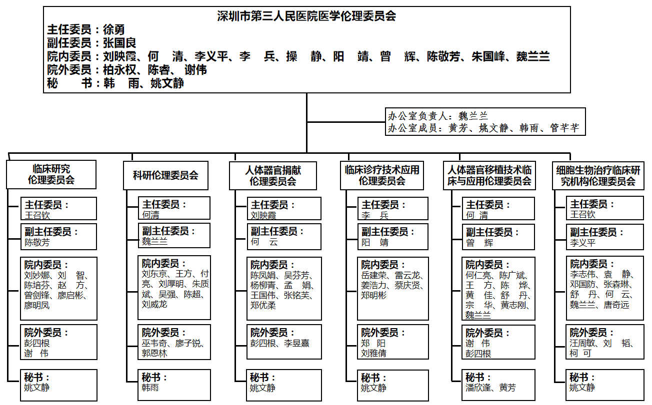 深圳市第三人民医院医学伦理委员会组织架构图